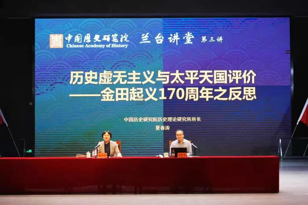 师生见面会之后,中国历史研究院举行了兰台讲座第三讲。中国历史研究院历史理论研究所所长夏春涛研究员以“历史虚无主义与太平天国评价——金田起义170周年之反思”为题,为同学们带来一场精彩的党史教育与历史学习相结合的讲座。此次讲座也是妖精视频