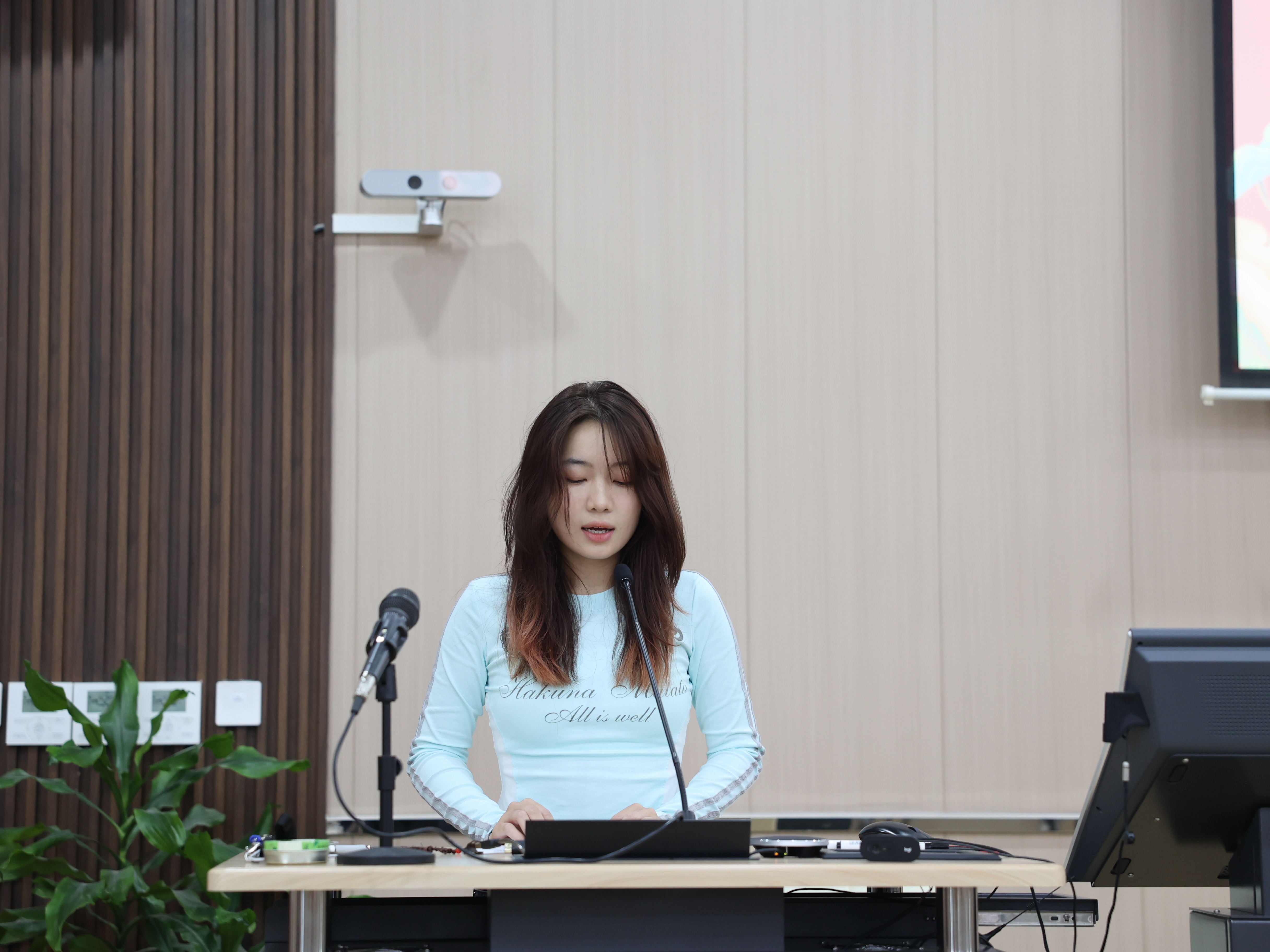 历史学专业新生代表韦轲钧以轻松活泼的方式分享了自己选择社科大历史专业的初衷,并展望自己在这所研究型大学期间的学习和生活规划。随后,韦轲钧结合自己几个月的学习生活,表达出对社科大学术氛围浓厚的赞叹,并向同学们分享了自己关于人文社会科学的看法,与同学们共勉。