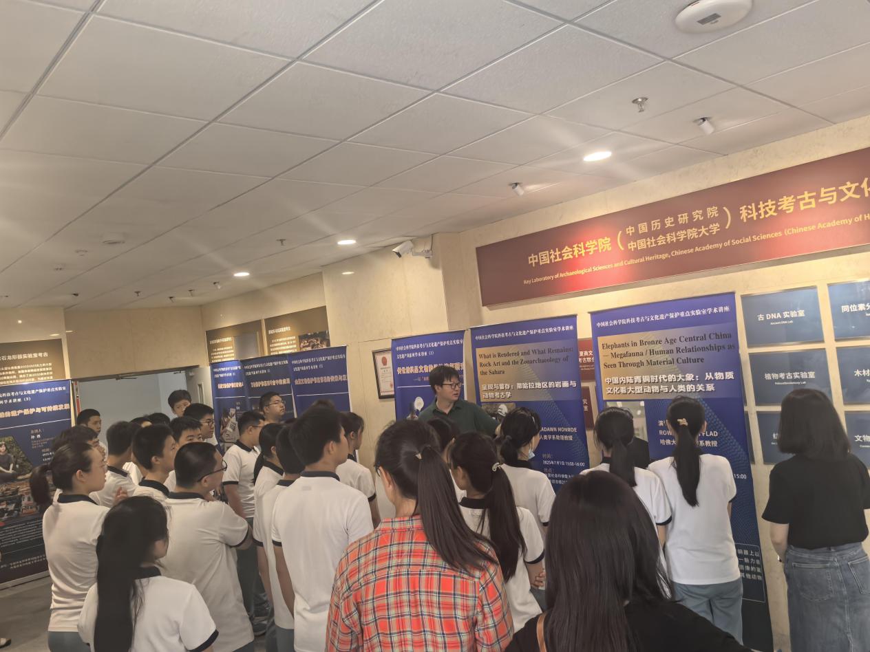 随后,师生们前往中国社会科学院科技考古与文化遗产保护重点实验室参观学习。动物考古实验室钟华老师用互动问答点燃了大家的探索热情。在钟华老师的带领下,师生们依次参观了碳14测年、木材考古、人骨考古、冶金考古、植物考古等科技考古子实验室。通过现场观摩和专家讲解,师生们对科技考古领域的前沿工作有了直观认识。