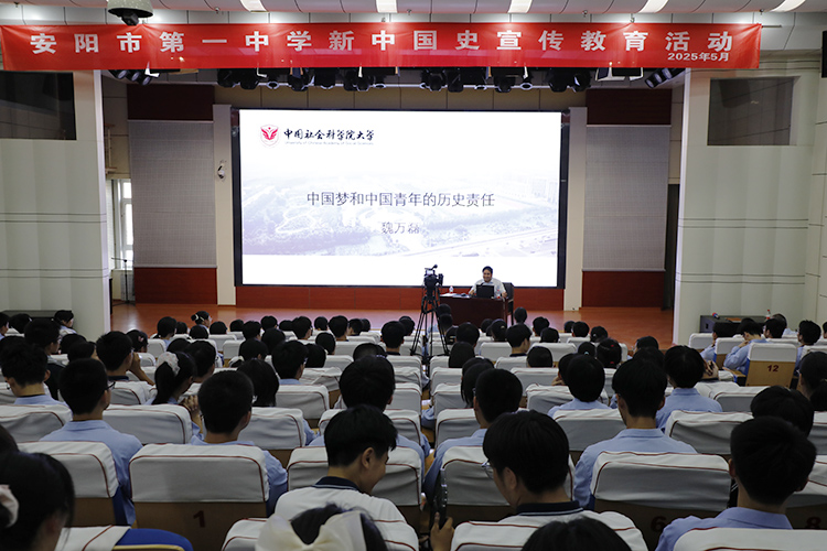 授牌仪式后,魏万磊副教授在安阳一中报告厅为一中同学们作主题为《中国梦与中国青年的历史责任》的讲座,带领同学们穿越历史长河,探寻时代使命,激发了大家的爱国情与奋进志。