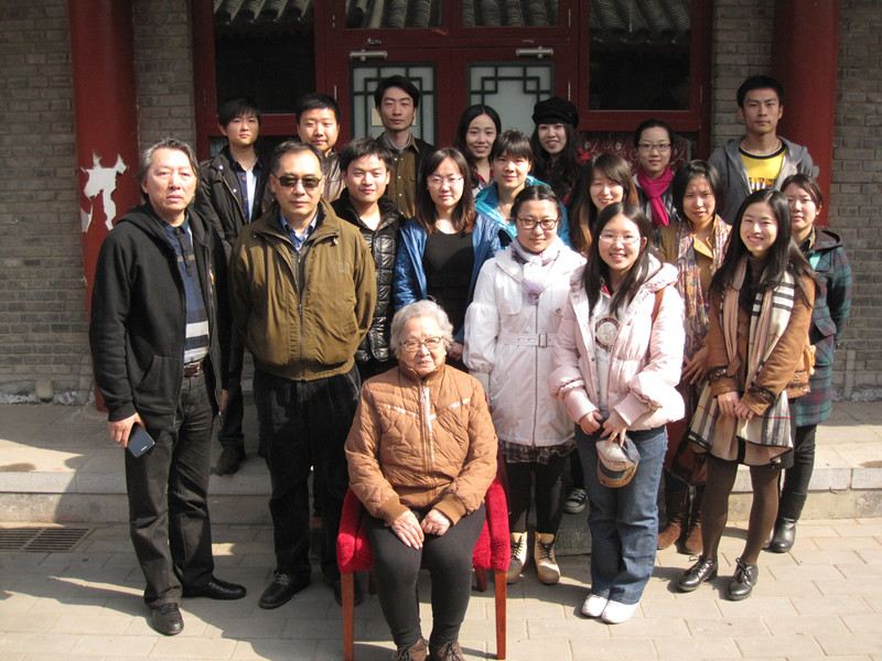 吴老师及同学在张伯驹故居前与张伯驹女儿张传綵(前一)张伯驹纪念馆馆长楼开肇(二排左一)合影