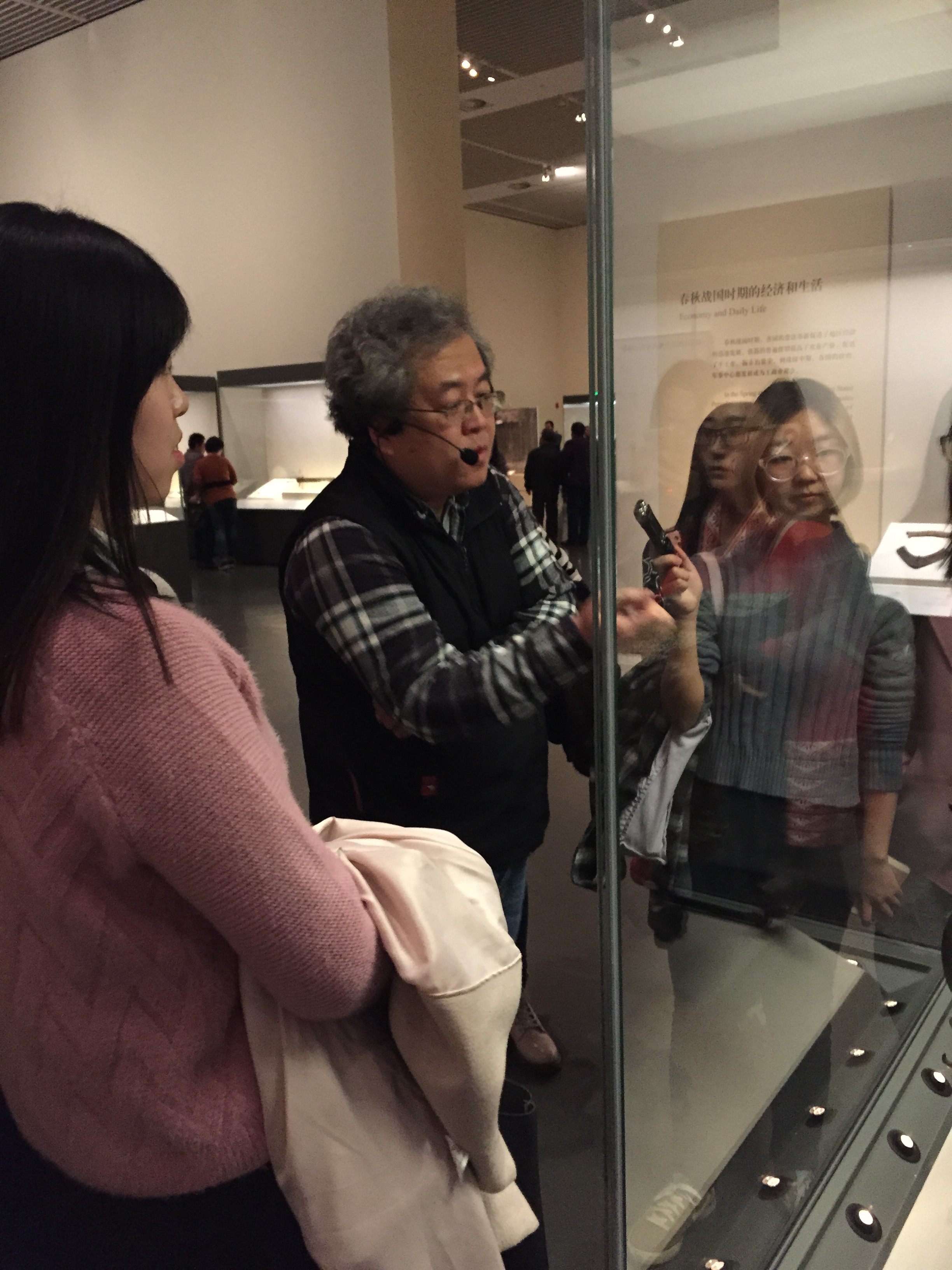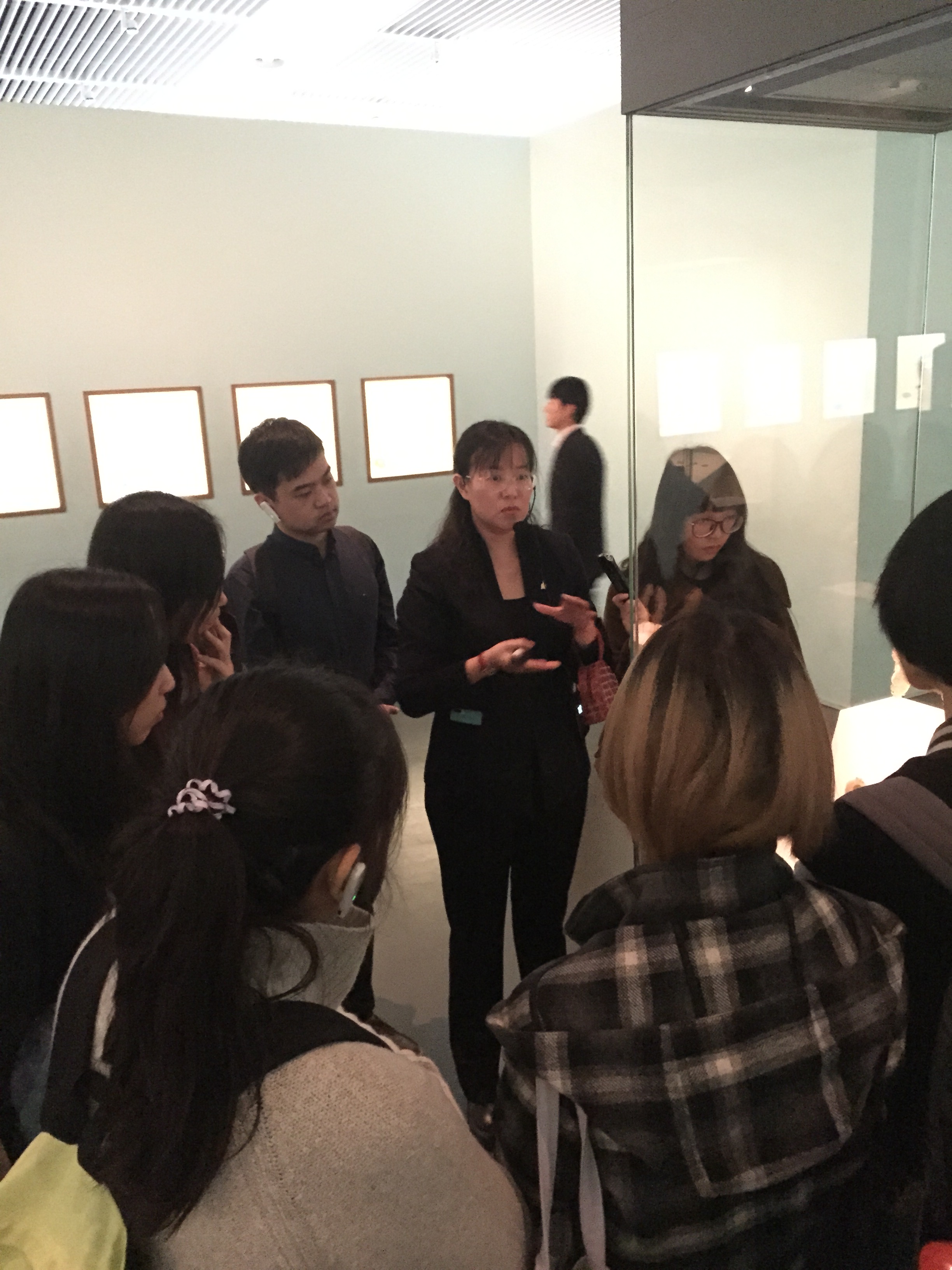 最后陈煜研究馆员向同学们从博物馆陈列的角度向同学们讲述了“古代中国”陈列展厅的构思、设计、布局和陈设等过程中博物馆人员所作的工作及遇到的问题等,并向同学们提出如“先秦思想家”主题陈设等可作为博物馆专业研究的课题。同学们在展厅中结合实际问题思考讨论,积极与老师交流,经过全天的考察学习同学们收颇多。