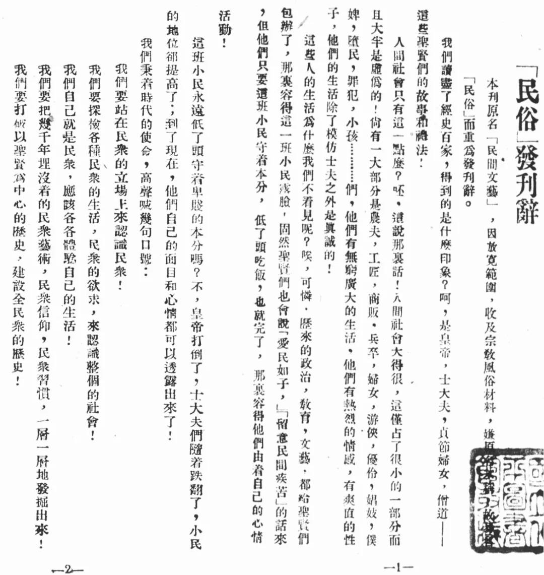 我们要把几千年埋没着的民众艺术,民众信仰,民众习惯,一层一层地发掘出来!