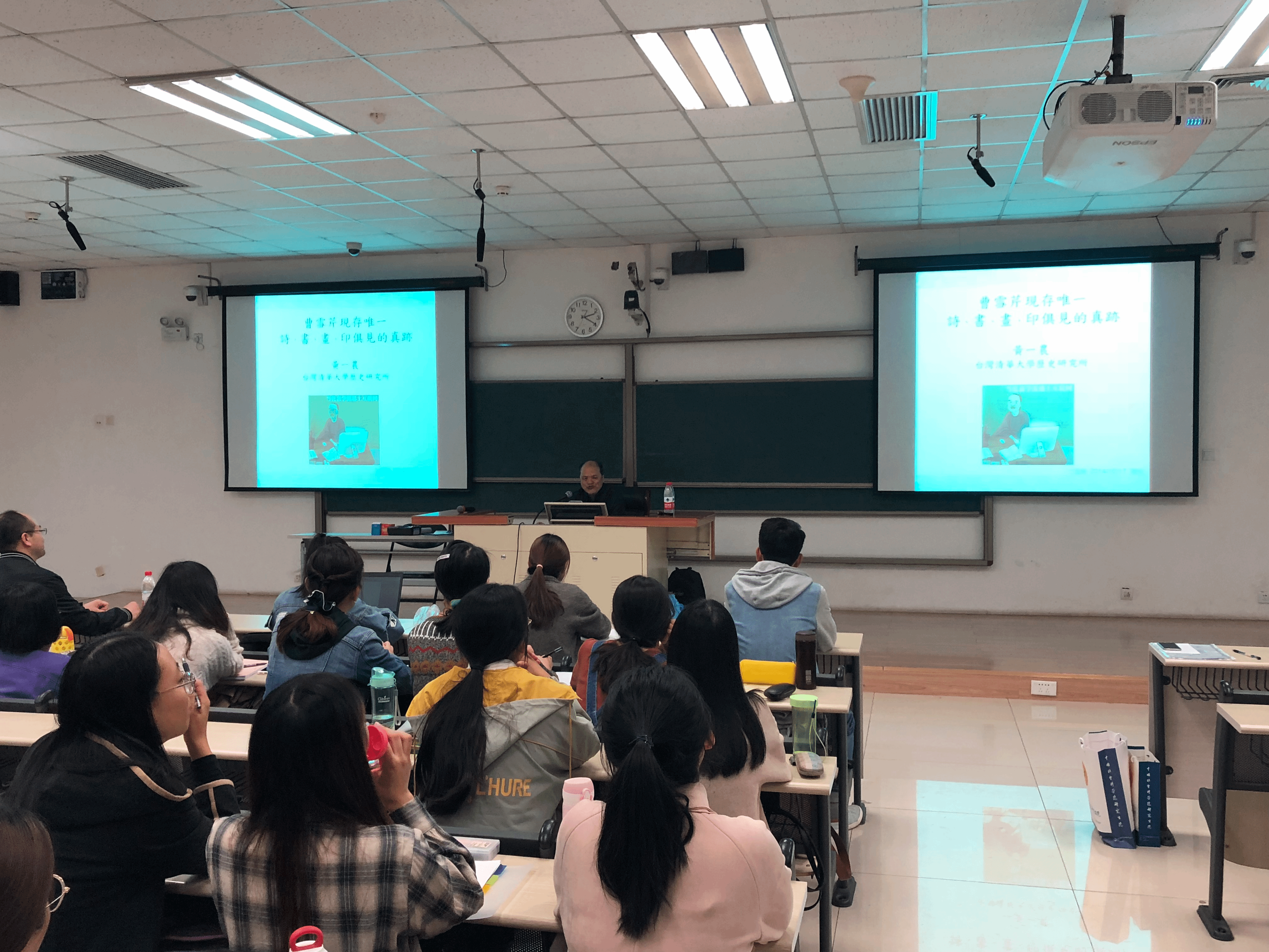 2018年10月9日下午和晚上,台湾清华大学人文社会学院院长、中央研究院院士黄一农教授,为文法学院文博专硕作了两场题为《曹雪芹現存唯一詩、書、畫、印俱見的真跡》和《< 紅樓夢>中的物質文化》的专题讲座。