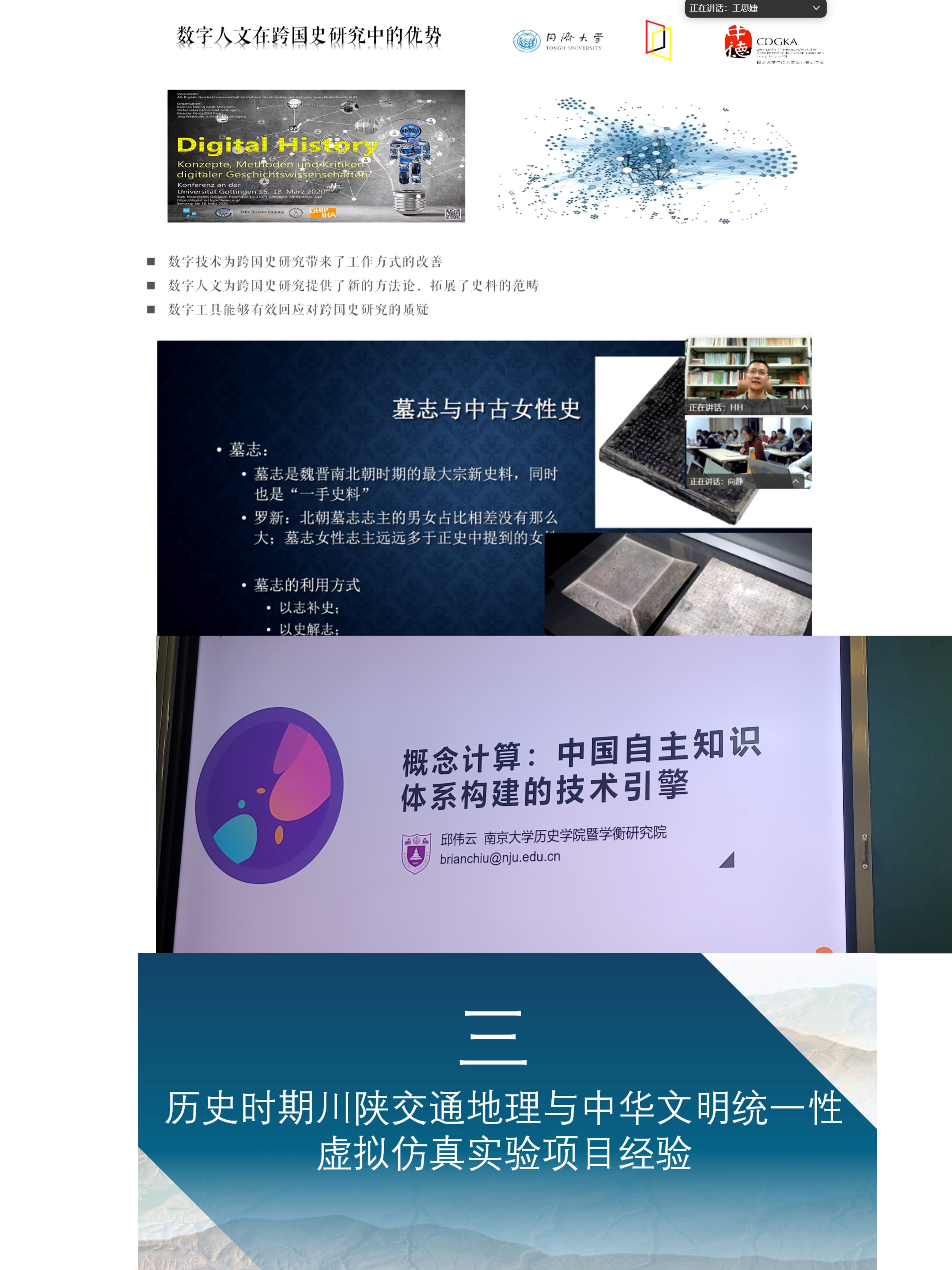 此次讲座是数字史学中心本年度组织的《人工智能与数字史学》系列活动之一,目前已举办另三期讲座活动分别是同济大学王思捷博士《跨国史研究的数字人文路径与挑战》、北京大学胡鸿教授《蛮女文罗气的一生》以及中国人民大学胡恒教授《数字史学方法与实践:虚拟仿真》。