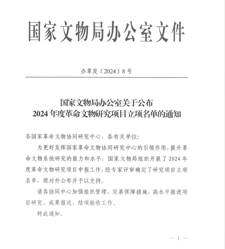 喜讯!社科大-军博国家革命文物协同研究中心获国家文物局2024年度革命文物研究项目立项!